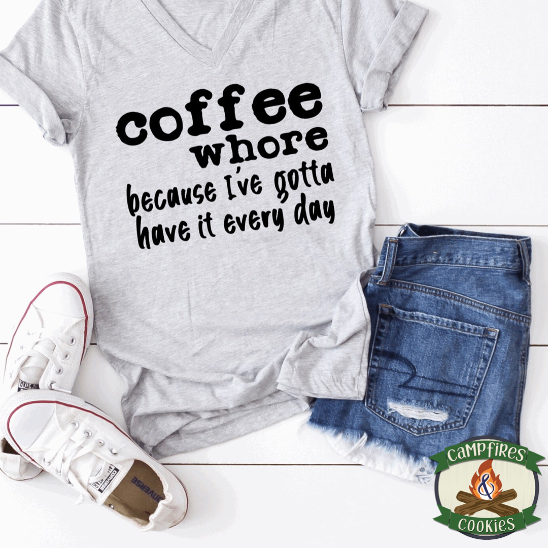 Is coffee what you crave? Do you just GOTTA have it every day? Then you may be a coffee whore. This design is printed on your choice of our premium apparel.