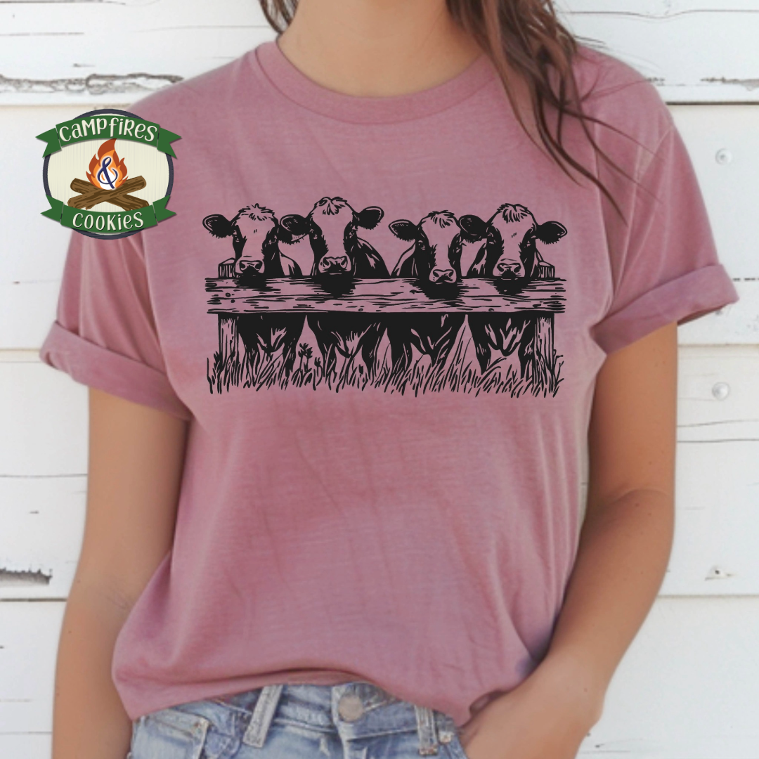 If you’ve ever locked eyes with a cow and felt like you were having a deep, soul-searching conversation, this shirt is for you. Our Cow Line Graphic Apparel features five adorable bovines lined up at the fence, ready for their close-up. Perfect for farm girls, cow lovers, and anyone who prefers the company of livestock to most people.