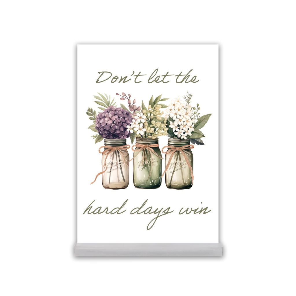 This beautiful reminder not to let the hard days win is available as a museum quality Acrylic Desk Print for your home or office. (Or makes a great gift!) The design is printed directly on .220 inch acrylic and features a matching acrylic display stand.