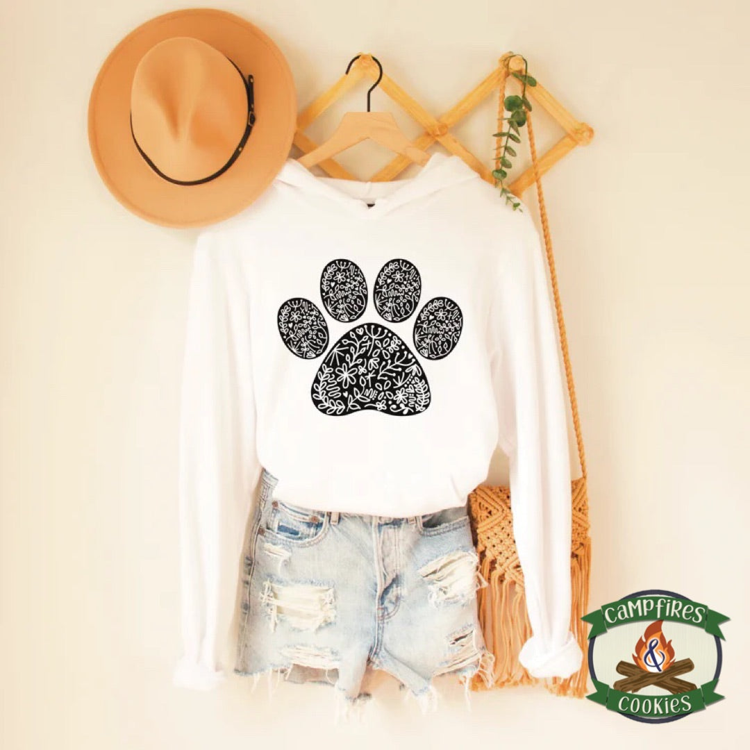 Floral paw print design for animal lovers everywhere. Design printed on your choice of our premium apparel.