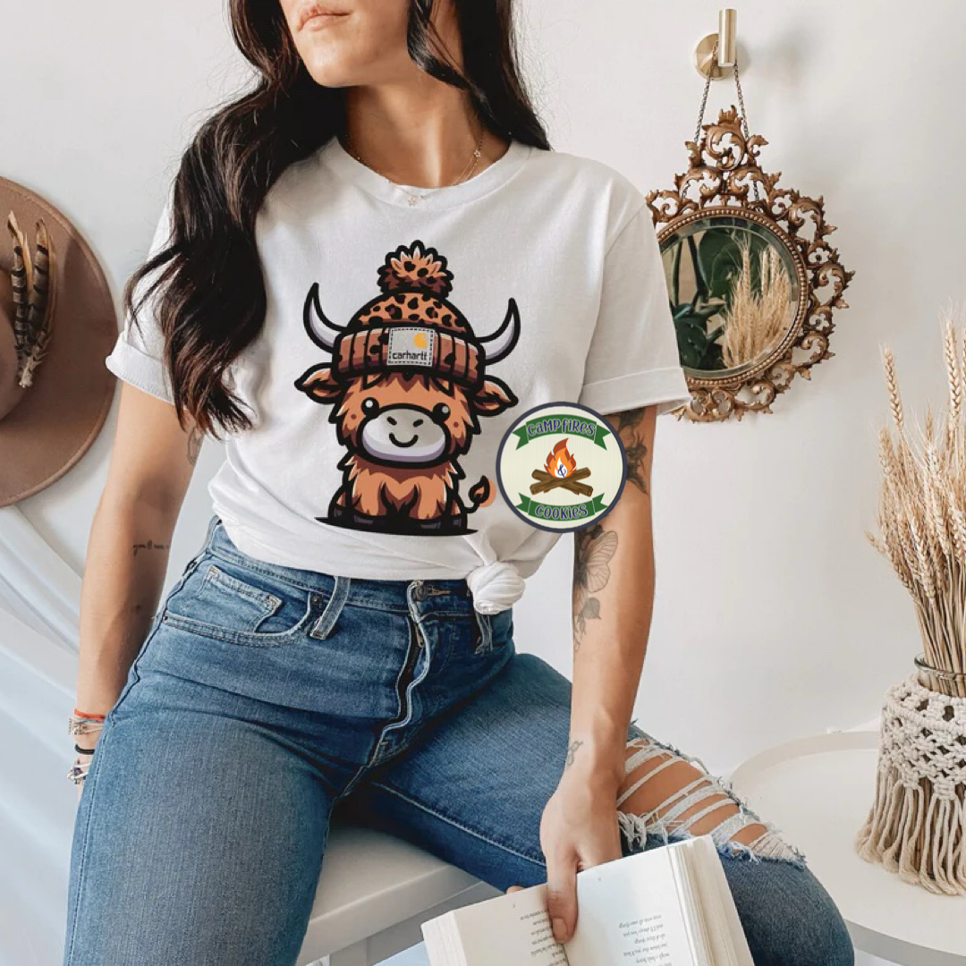 This lil’ highland mini cow full color design is so cute, you’ll want to wear it everywhere. Printed on your choice of unisex tee, crewneck sweatshirt or hoodie.