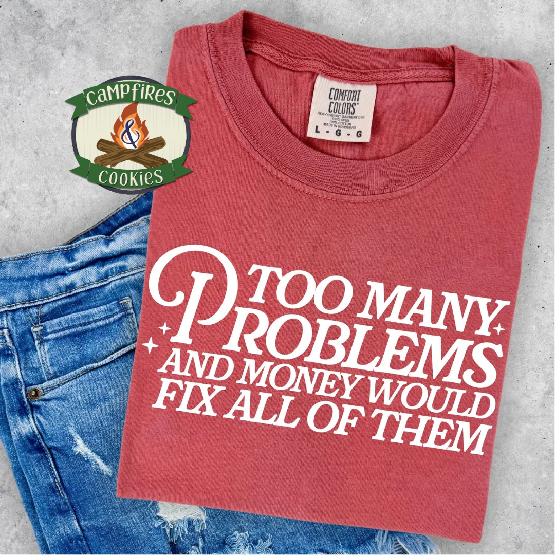 Let’s be honest—money might not buy happiness, but it sure would fix a whole lot of problems. This “Too Many Problems” graphic tee gets straight to the point with a bold, playful statement that feels a little too real. Hand-pressed in our studio (never mass-produced or drop-shipped), this shirt pairs comfort with sass for the woman who keeps it real and stylish.