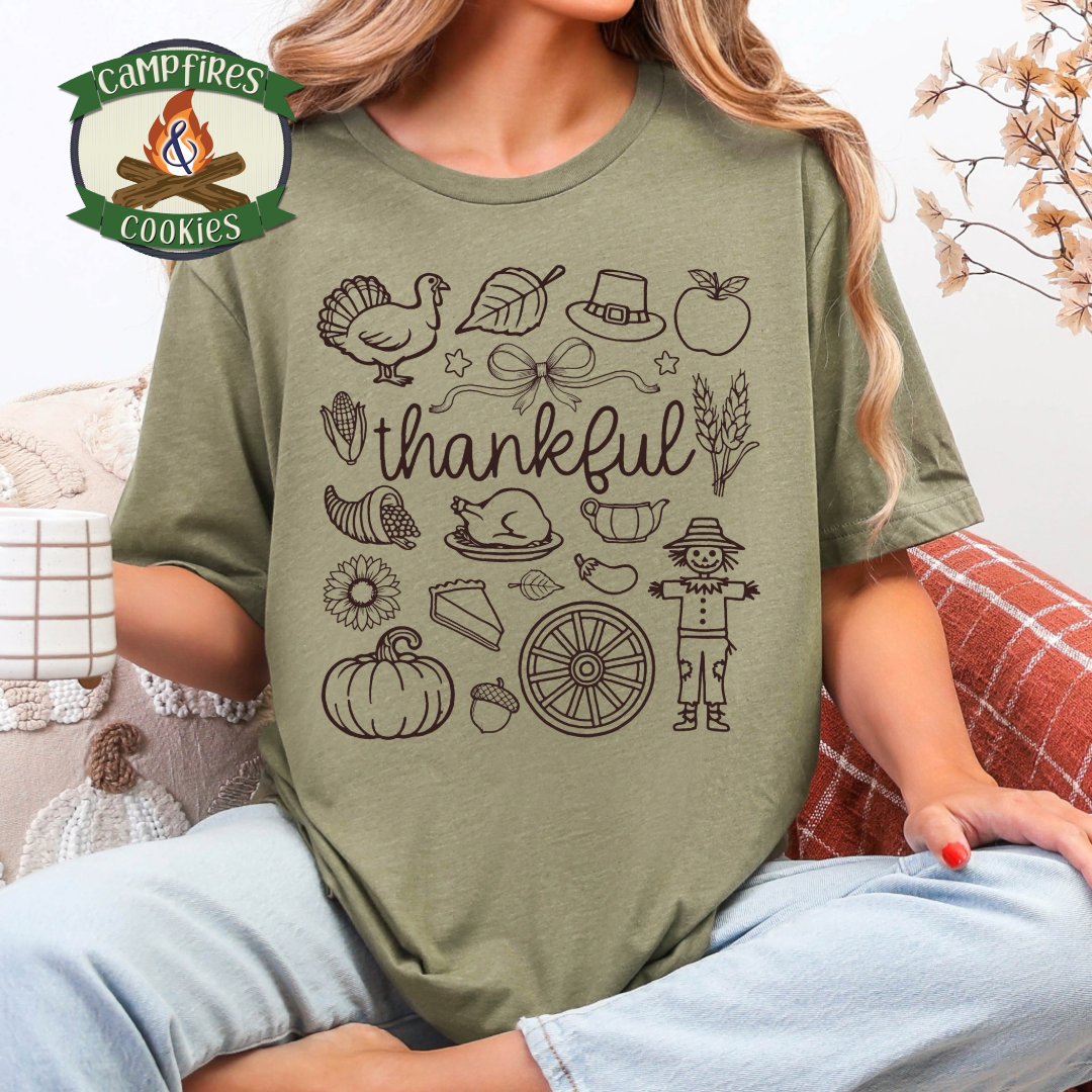 Gratitude looks good on you — literally. This “Thankful” collage design rounds up all the cozy autumn vibes: turkeys, pumpkins, pie, scarecrows, and more (basically everything worth showing up for at Thanksgiving dinner). Whether you’re sipping cider, corralling family for the annual “who-carves-the-turkey” debate, or just rocking the fall aesthetic because pumpkin spice is a personality trait — this tee or sweatshirt has you covered.